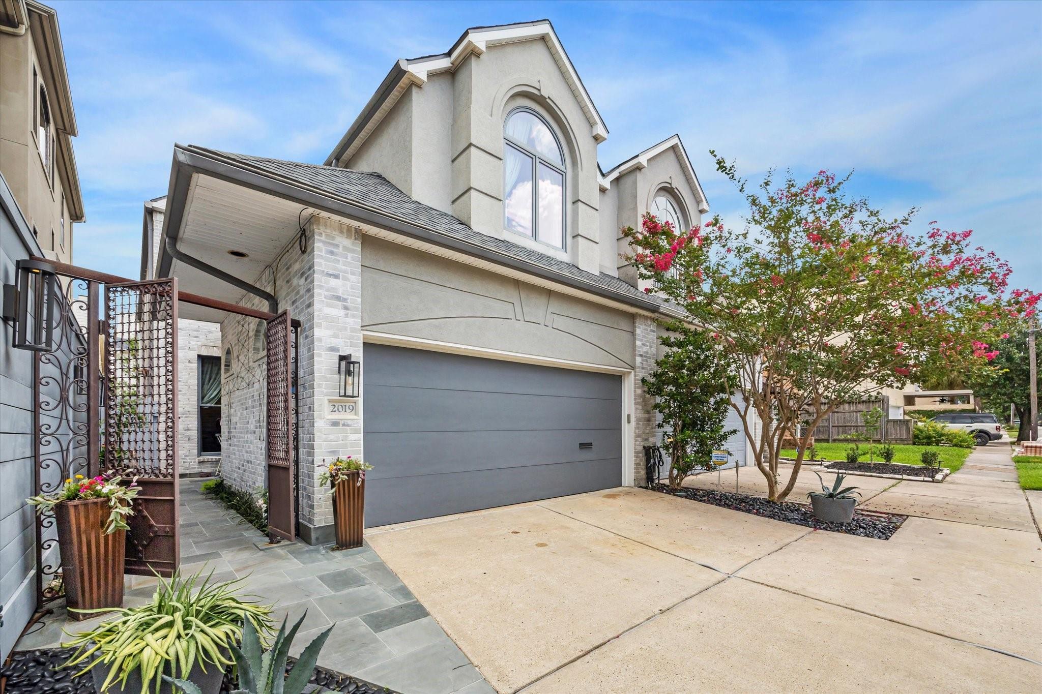 Exquisite Country French TH in Heart of Montrose! Nestled in private gated enclave, 3-bedroom, 3.5-bath residence w/2-car garage showcases timeless elegance & rare design elements. Adorned w/Reclaimed & Antique materials, flooring, countertops & doors sets this one apart, a True Gem! The grand double front doors, Reclaimed 18th-century French marble…